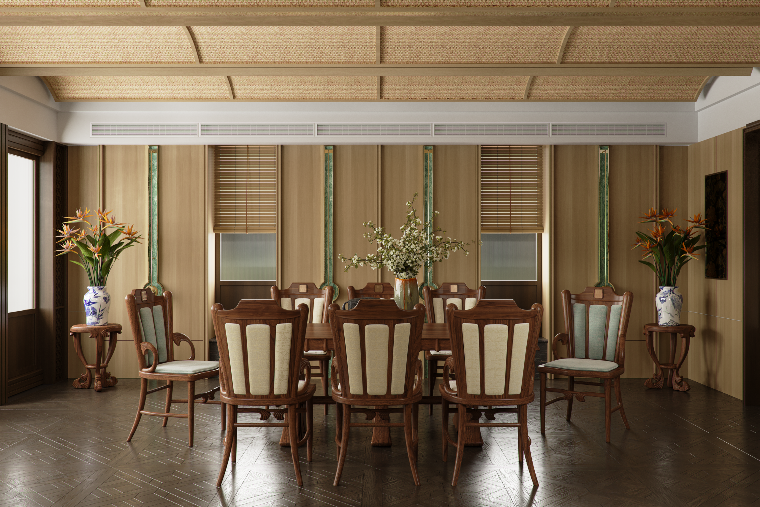 Bàn ăn Hội Thủy thuộc bộ sưu tập Hội Thủy, được phát triển từ hình tượng dòng nước hội tụ – biểu trưng cho sự kết nối, nuôi dưỡng và cân bằng trong không gian sống. Thiết kế tập trung vào các đường nét mềm mại, liền mạch và tỷ lệ hài hòa, tạo nên dáng ghế nhẹ nhàng nhưng vững chắc, phù hợp với những không gian đề cao sự tinh tế và chiều sâu.