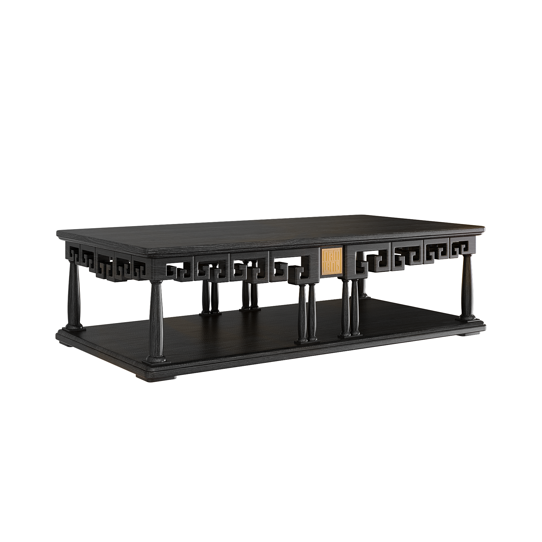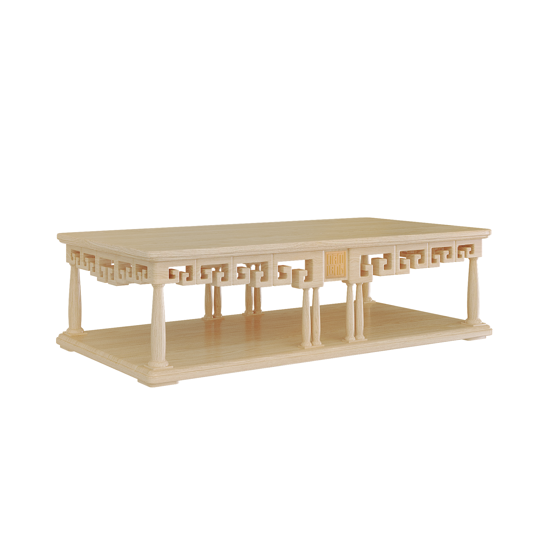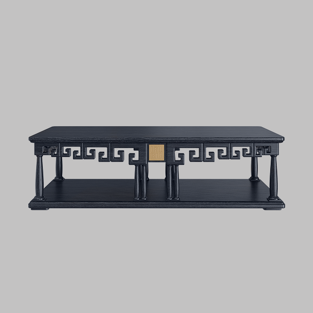 Các chi tiết trang trí được cách điệu gọn gàng, kết hợp với hình tượng chạm khắc truyền thống. Mặt bàn có thể tùy biến với hiệu ứng sơn mài tinh xảo, phối hợp hài hòa với sofa và ghế, tạo thành một tổng thể phòng khách sang trọng và đồng bộ.
