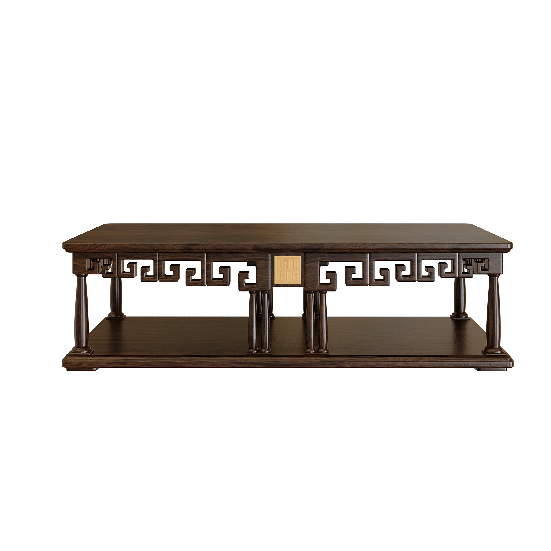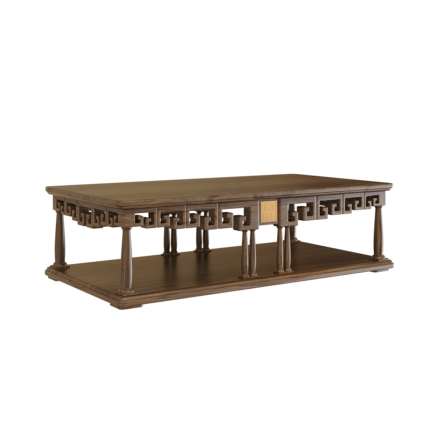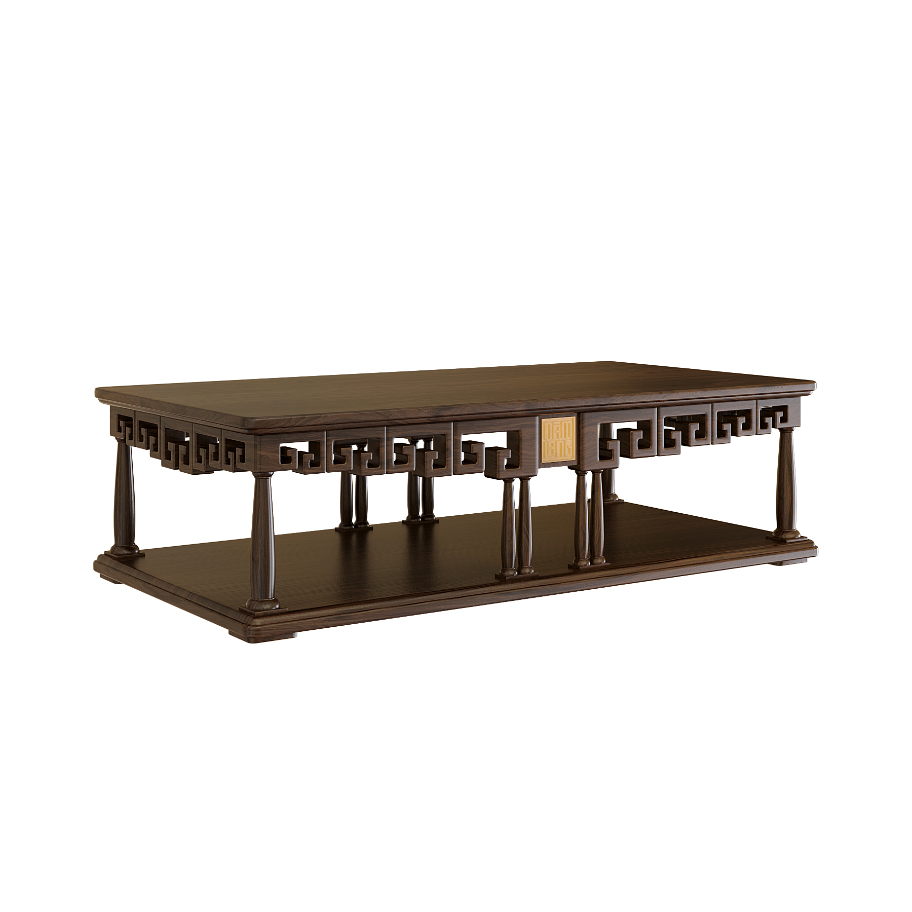 Các chi tiết trang trí được cách điệu gọn gàng, kết hợp với hình tượng chạm khắc truyền thống. Mặt bàn có thể tùy biến với hiệu ứng sơn mài tinh xảo, phối hợp hài hòa với sofa và ghế, tạo thành một tổng thể phòng khách sang trọng và đồng bộ.