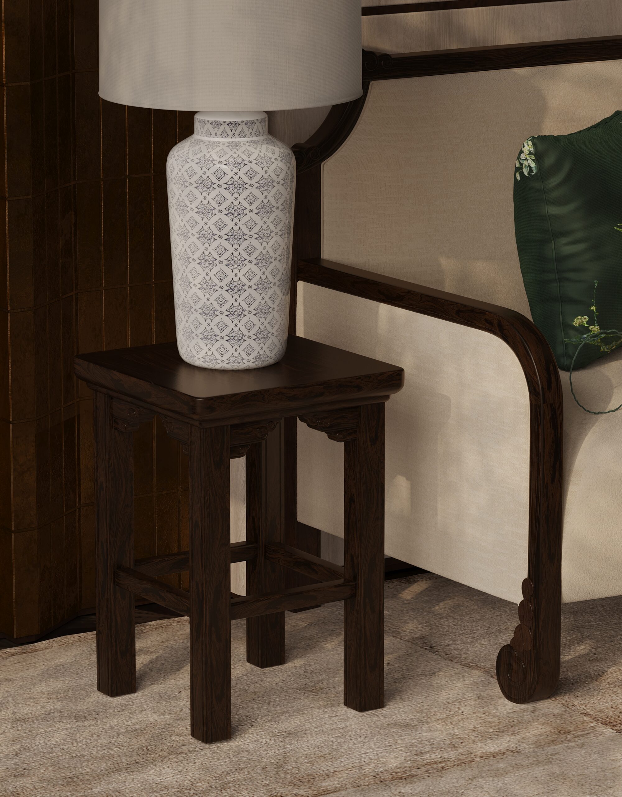 Đôn Góc Diễm Vân được thiết kế tinh xảo với chân đôn mô phỏng chi tiết Đầu Dư cách điệu, gợi nhắc kiến trúc gỗ truyền thống Việt Nam. Khung đôn được trang trí bởi họa tiết Mây Lửa chạy quanh, mang lại vẻ đẹp mềm mại, duyên dáng nhưng vẫn giữ sự sang trọng và bền chắc.