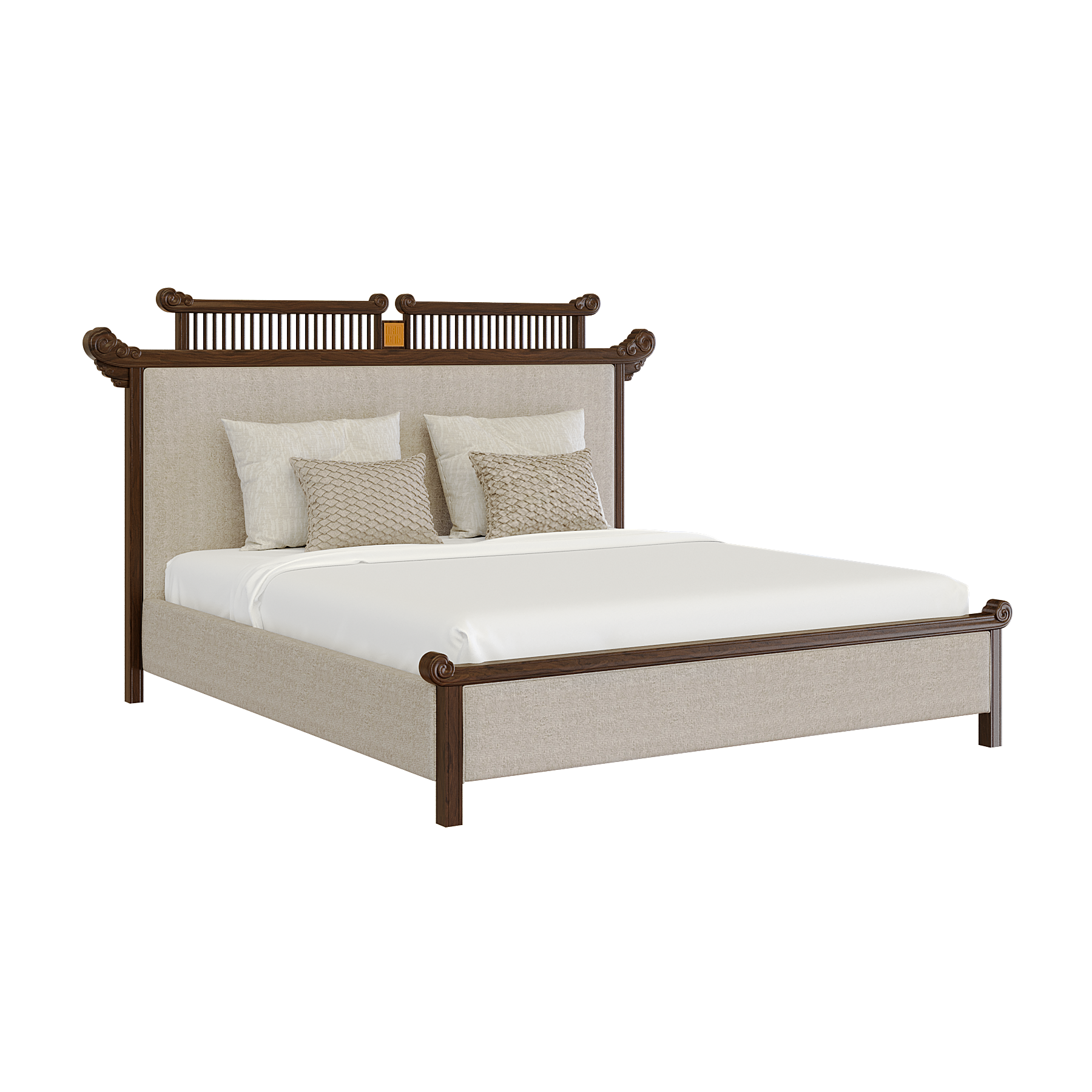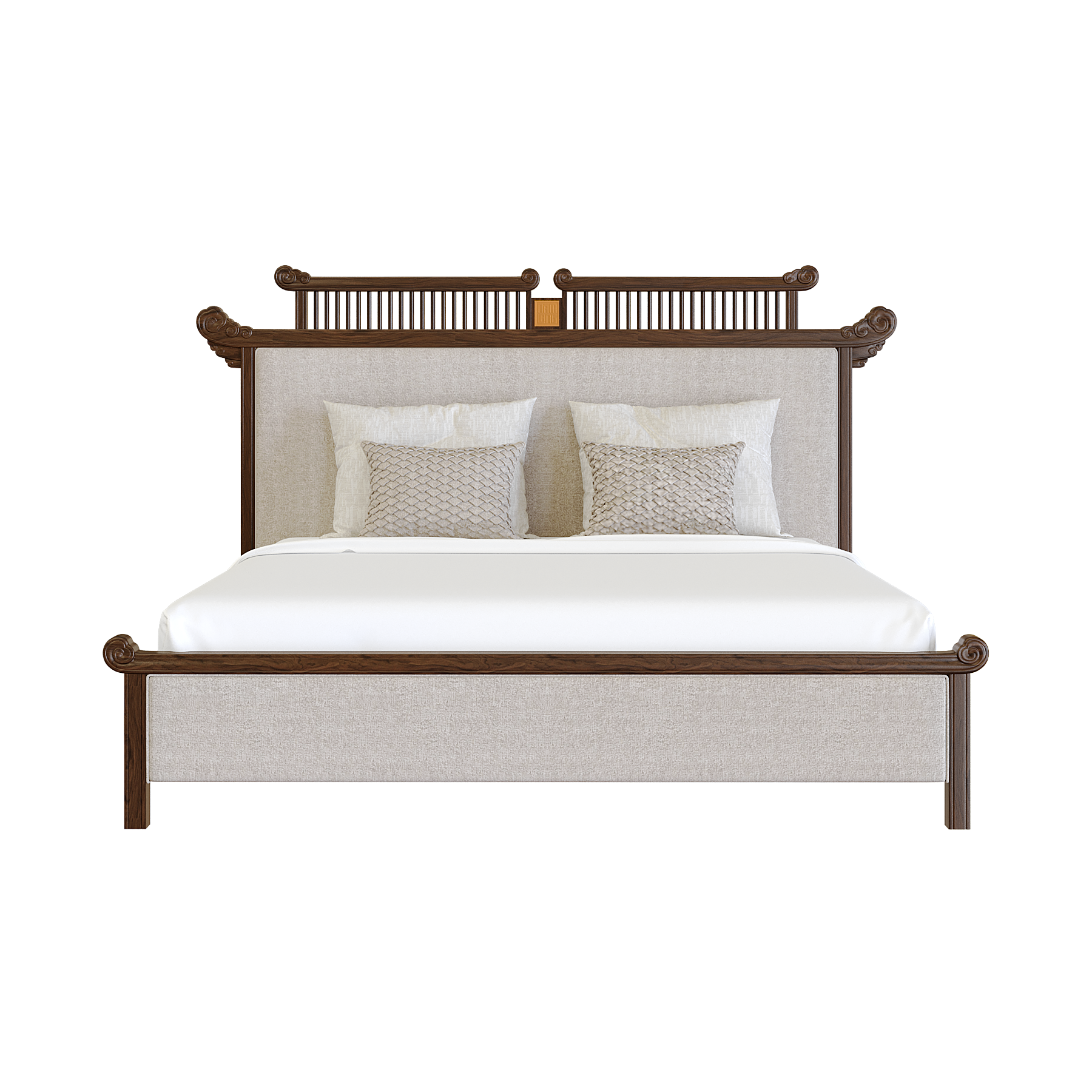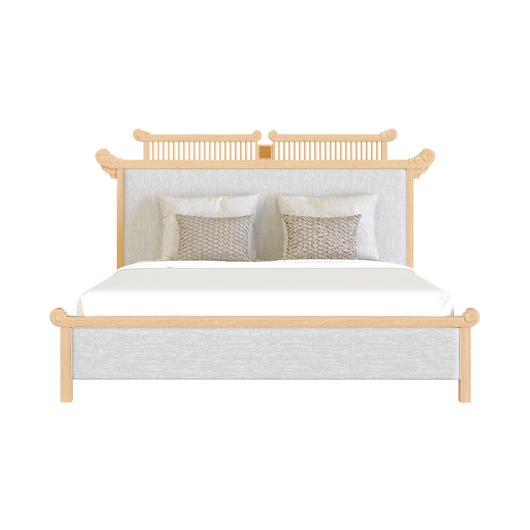 Giường Diễm Vân mang đậm dấu ấn văn hóa Việt với họa tiết Mây Lửa và chi tiết Đầu Dư cách điệu, lấy cảm hứng từ kết cấu nhà gỗ truyền thống. Các đường nét mềm mại, uyển chuyển giữa khối tựa và chân gợi nhắc hình ảnh mái đình, mái chùa xưa, vừa trang nghiêm vừa gần gũi.