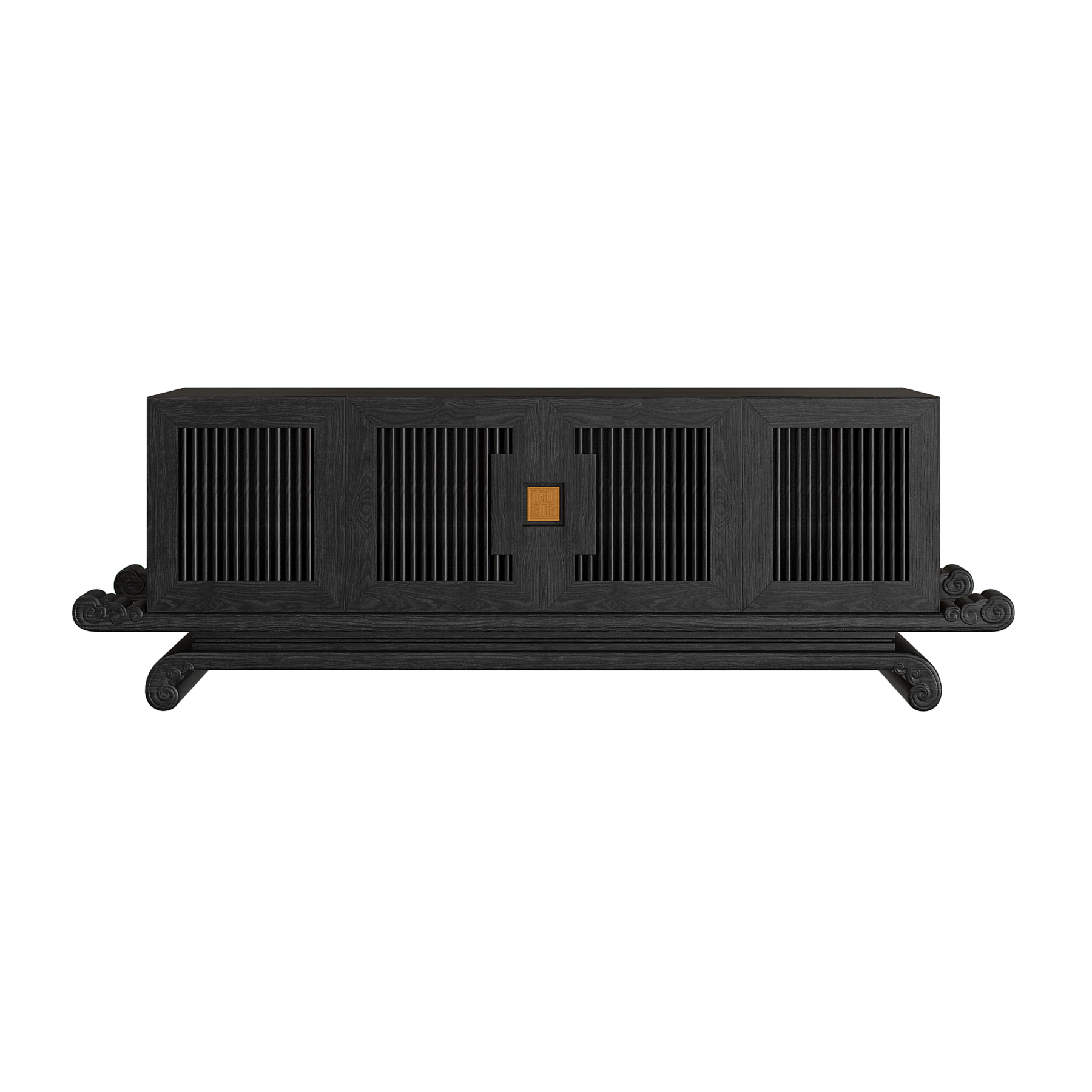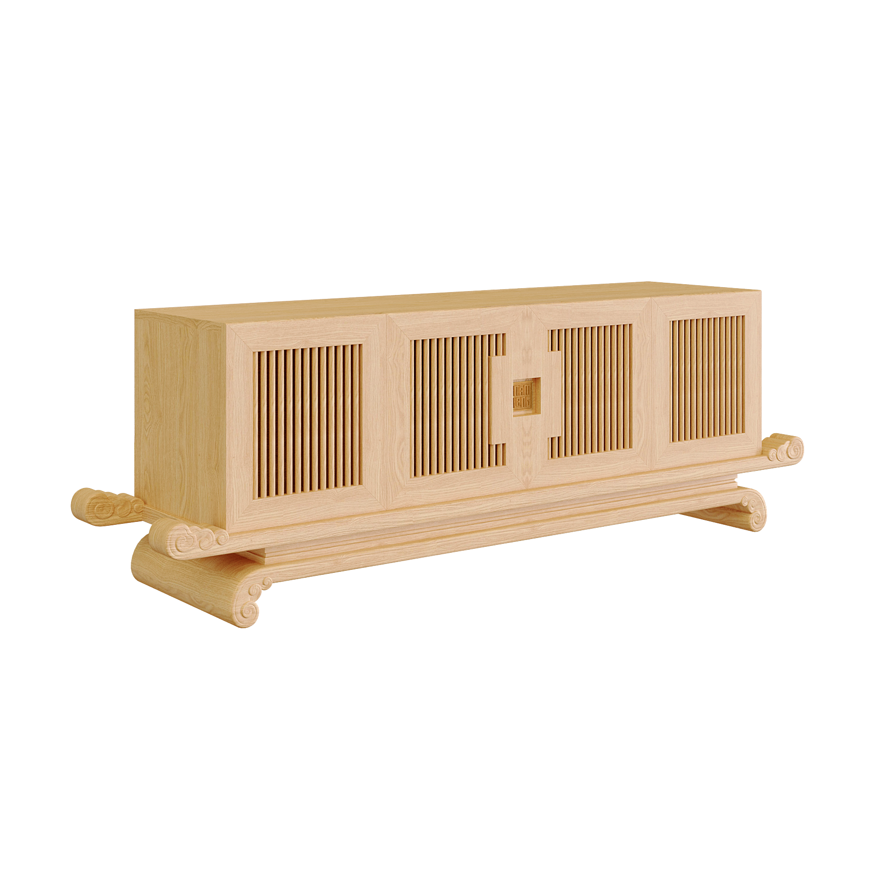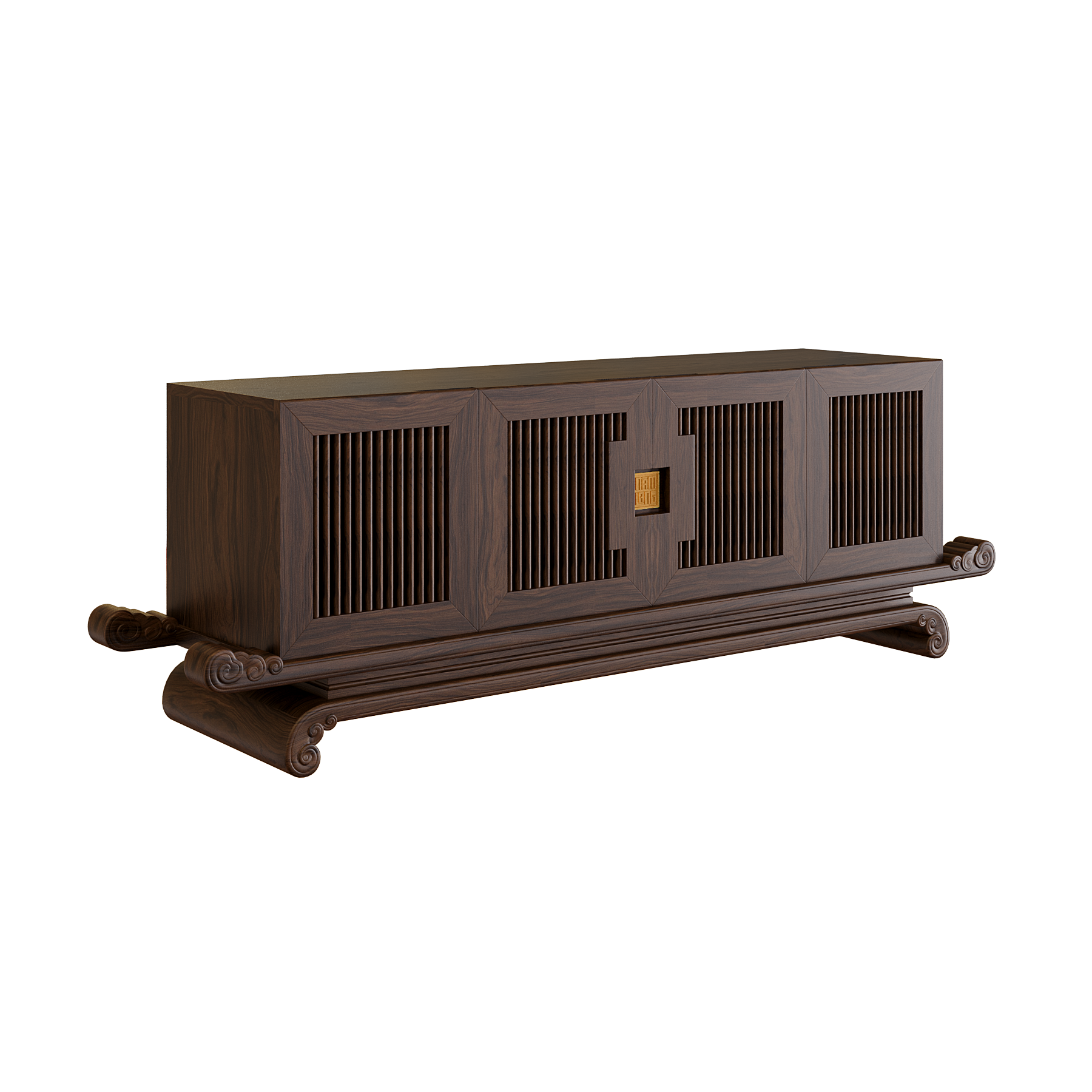 Kệ TV Diễm Vân được thiết kế lấy cảm hứng từ kiến trúc truyền thống Việt Nam, nổi bật với họa tiết Mây Lửa mềm mại và chi tiết mô phỏng thanh đòn của kiệu cổ. Sự kết hợp này mang đến dáng vẻ trang trọng, gợi nhắc nét đẹp văn hóa Việt trong không gian sống hiện đại.