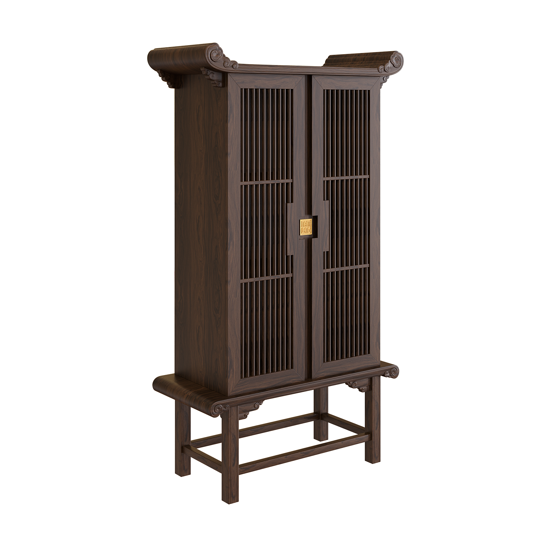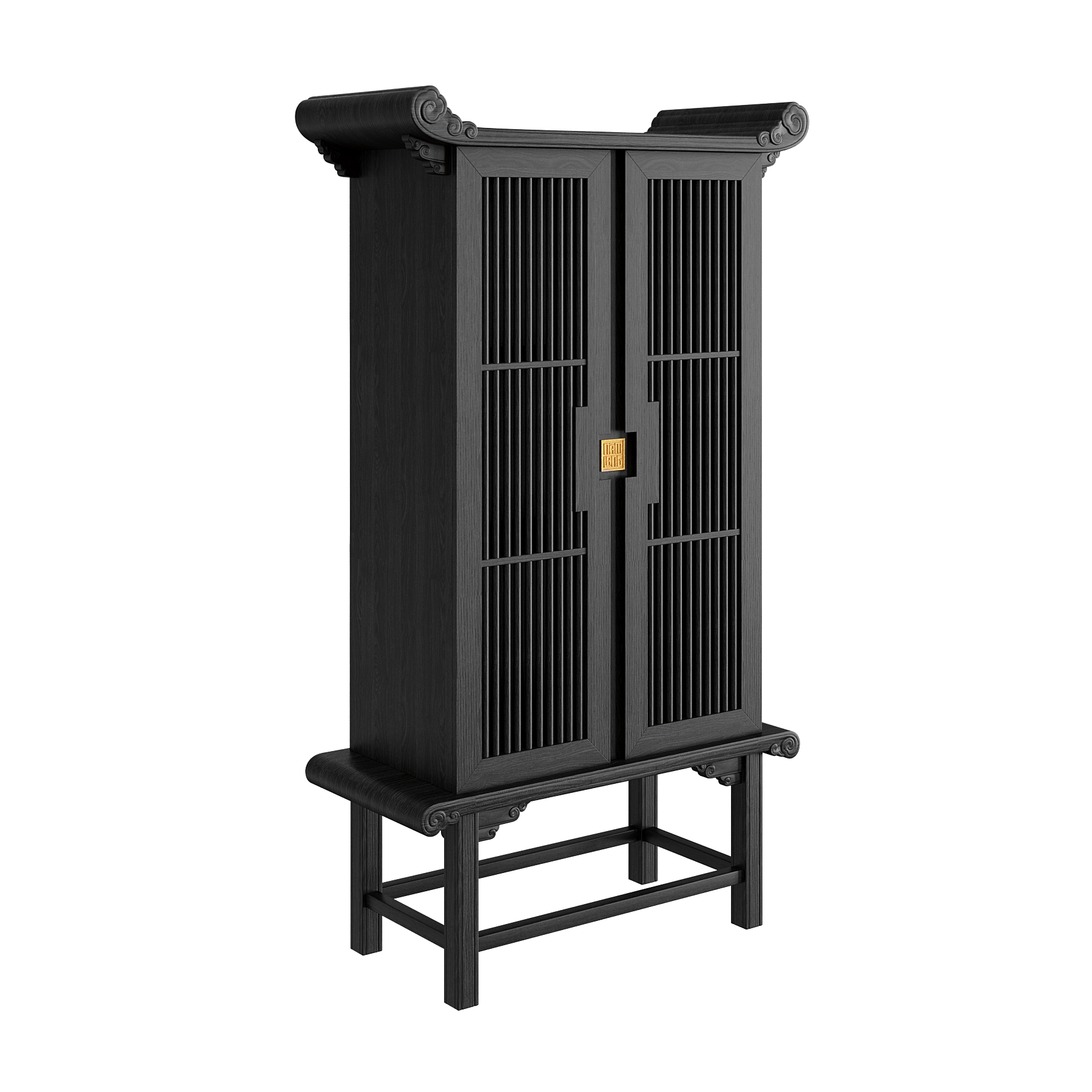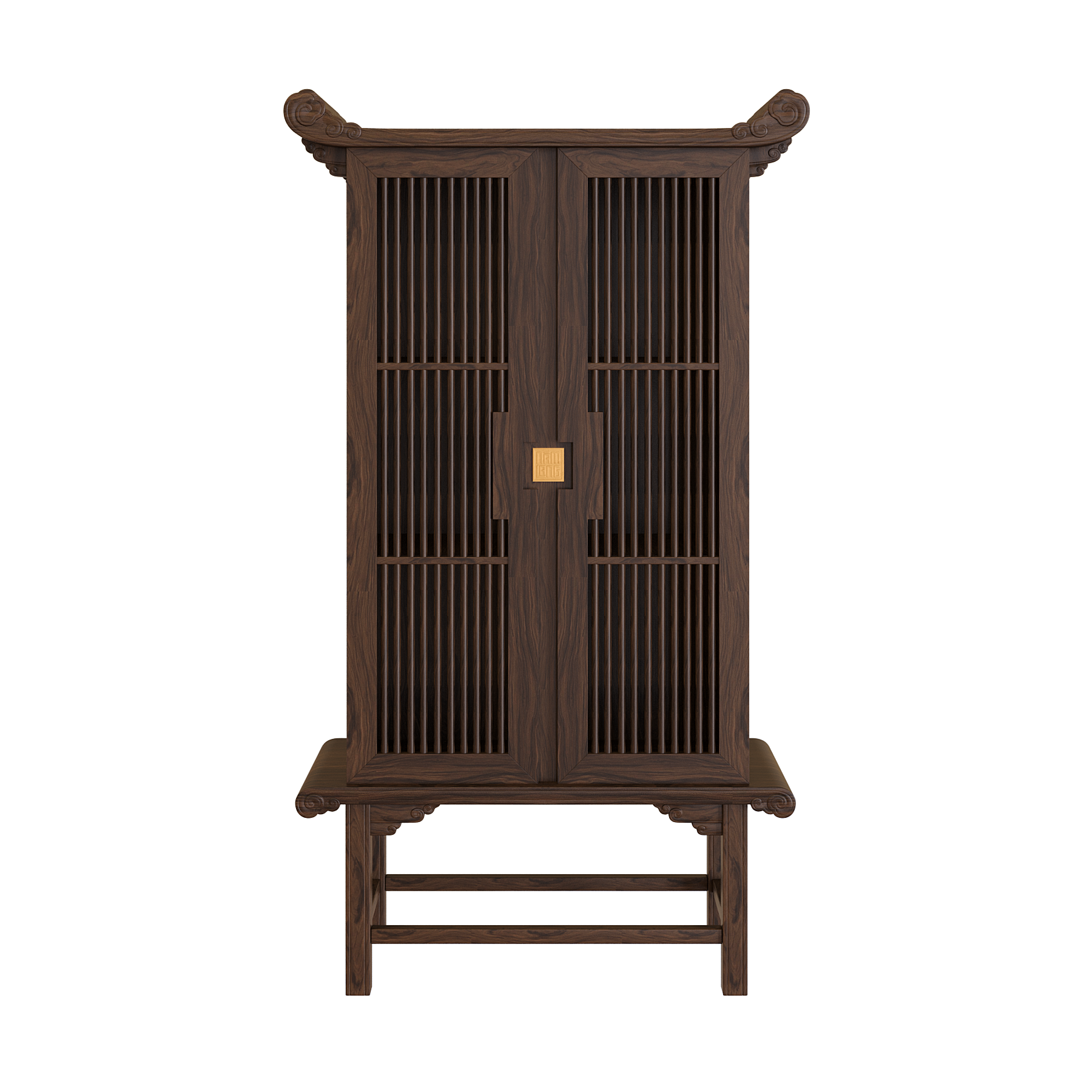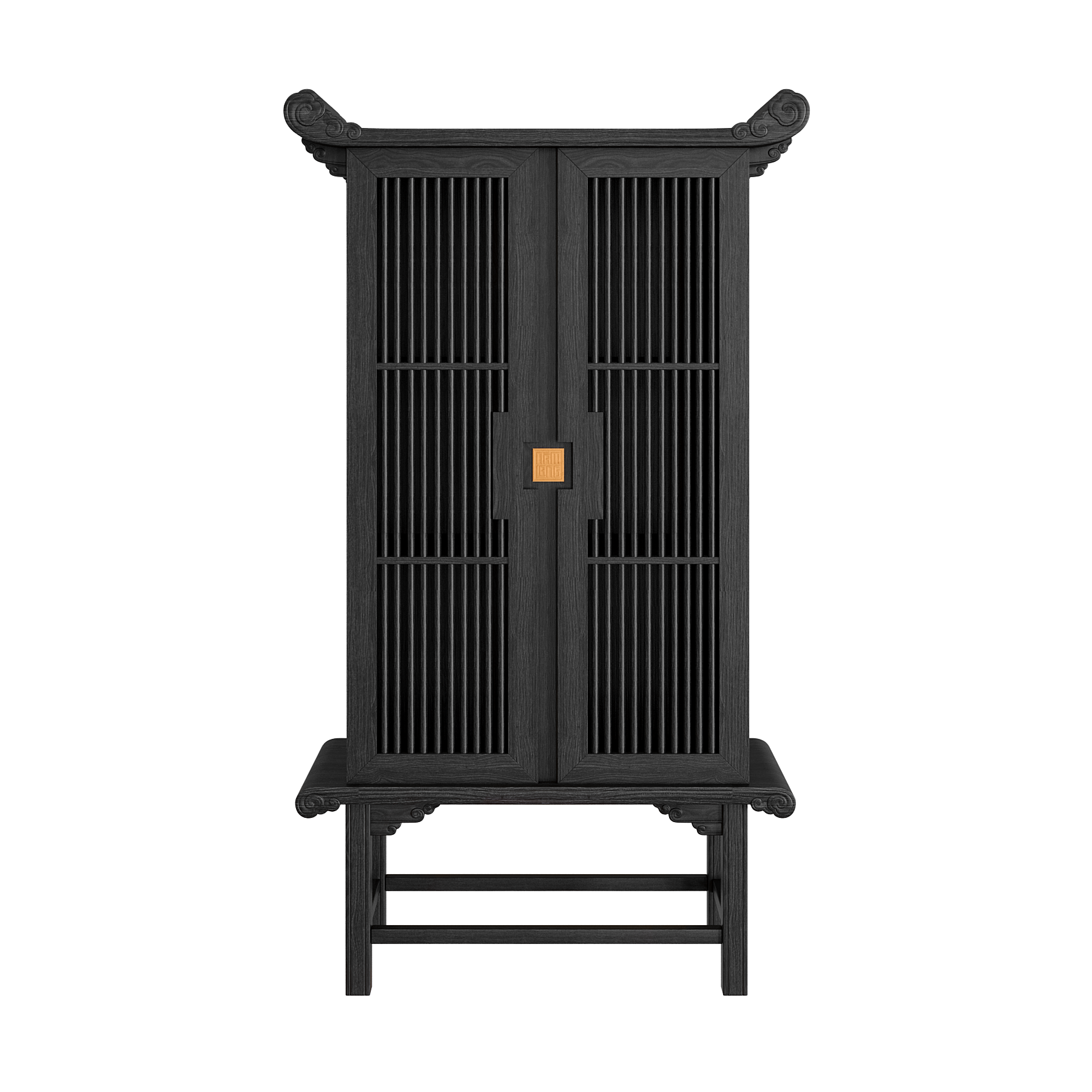 Mái tủ được uốn cong gợi hình mái đình, mái chùa truyền thống, tạo nên vẻ đẹp trang nghiêm và đậm dấu ấn văn hóa Việt. Các chi tiết Đầu Dư và Mây Lửa chạm khắc tinh xảo trở thành điểm nhấn nghệ thuật, vừa sang trọng vừa giàu ý nghĩa biểu tượng.